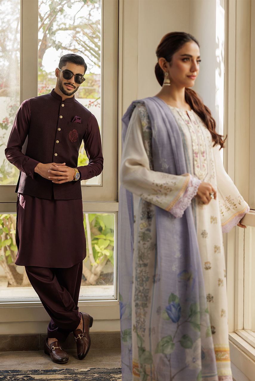 This burgundy Boski linen kurta shalwar radiates timeless elegance with a contemporary twist, featuring a Mandarin collar. Tailored from premium Boski linen fabric, it offers both comfort and style. The rich burgundy hue adds a touch of sophistication and warmth to the ensemble, making it perfect for formal events or cultural celebrations.