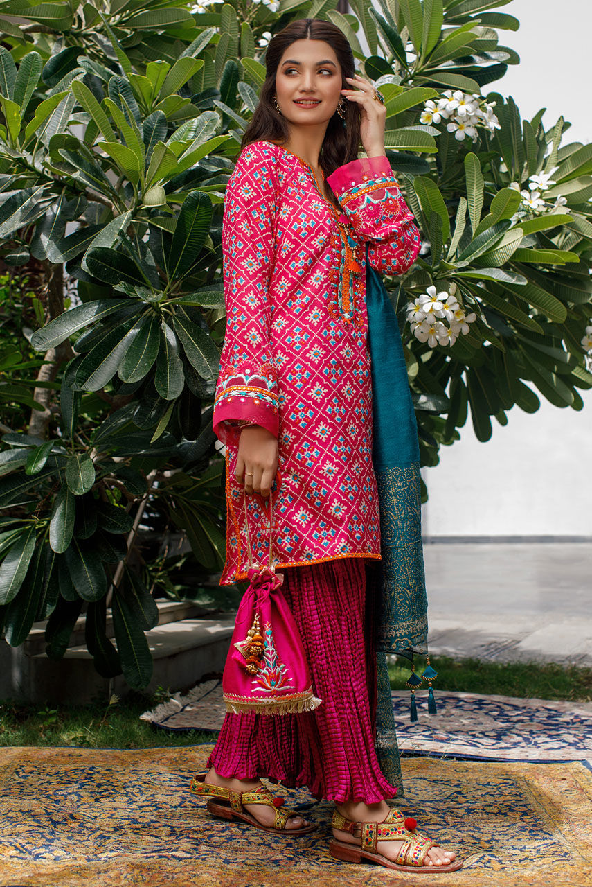 Color: Bougenvella Pink Work Details: Embroidered