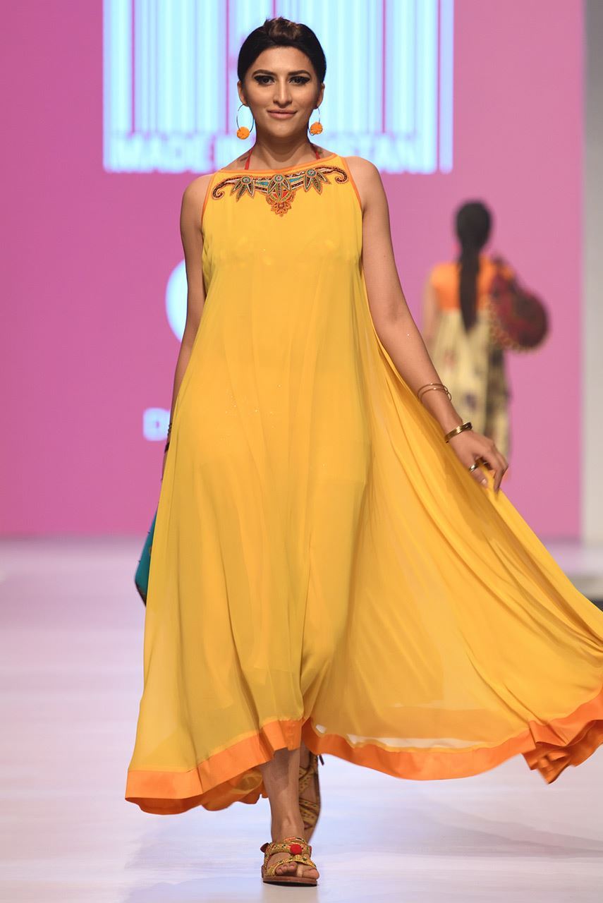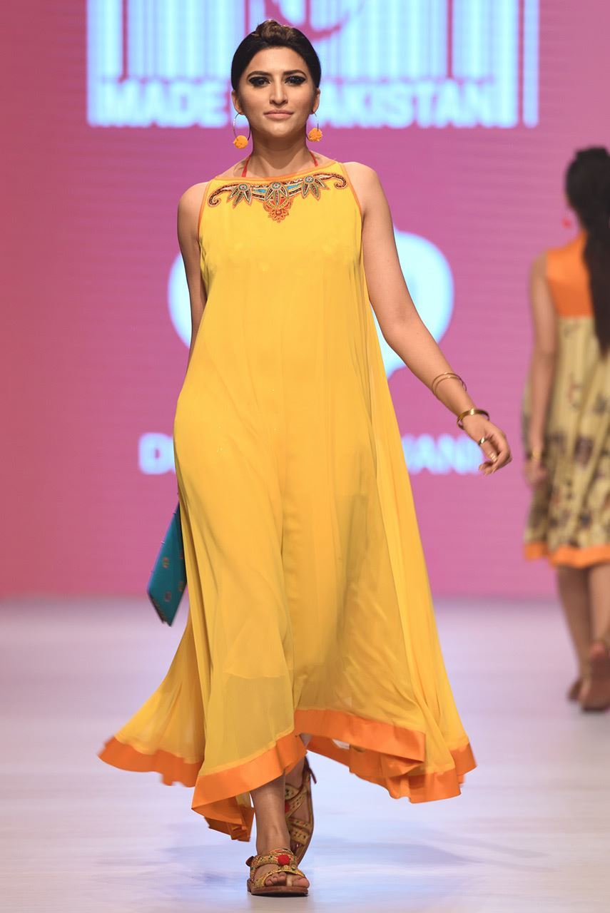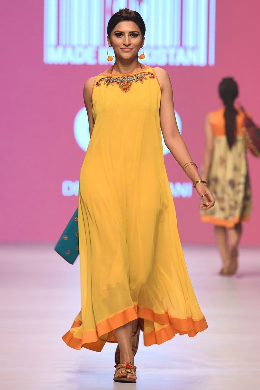 Long sleeveless summer dress in blazing lemon hue in georgette with our Signature D's philosophy applique and embellishment.