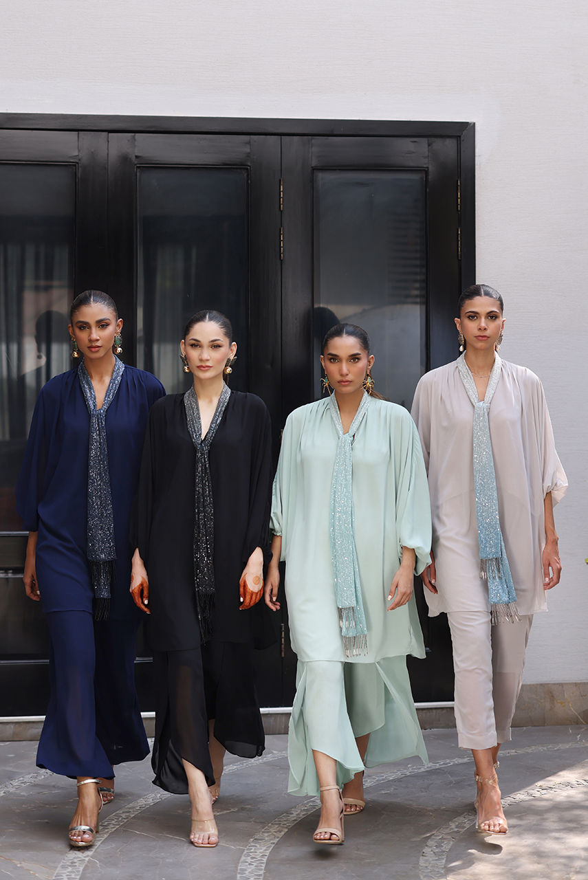 This beautiful luxury pret piece blends elegance, sophistication and high end fashion. Cut from Georgette and shaded sequin finished with beaded fringe.
