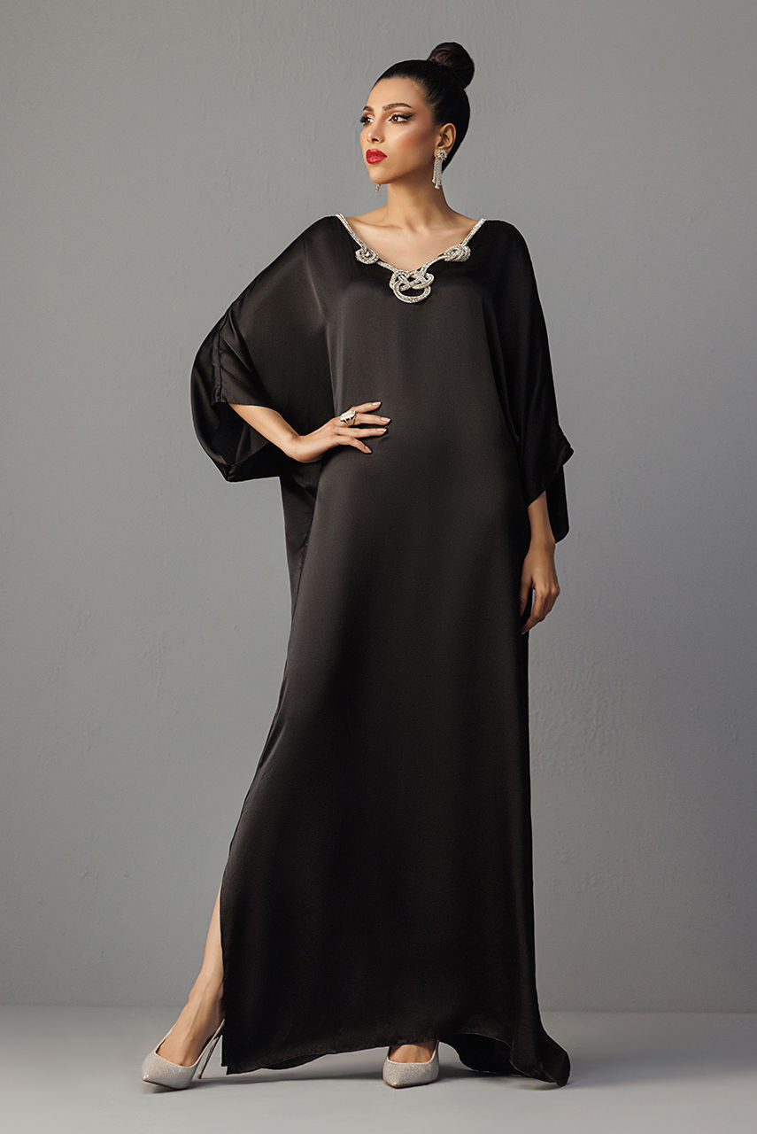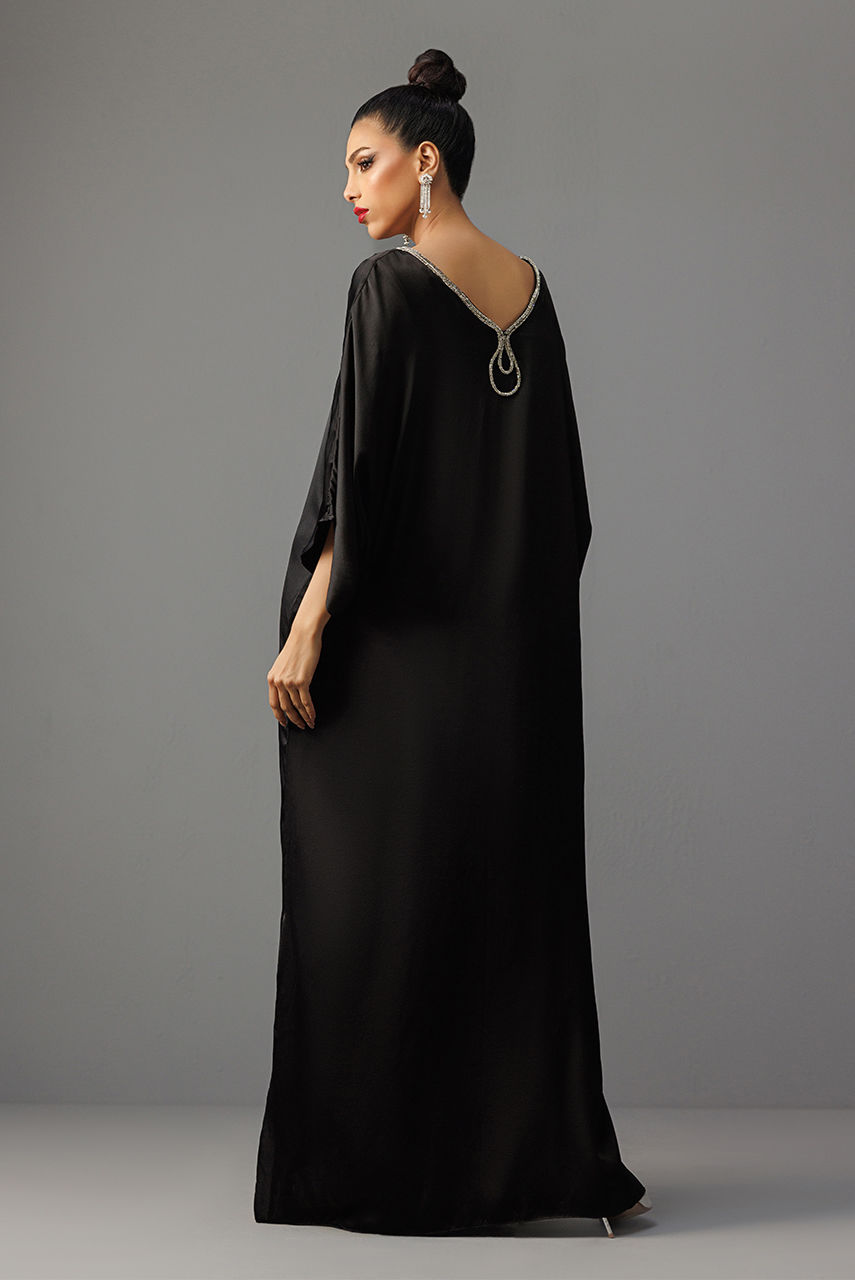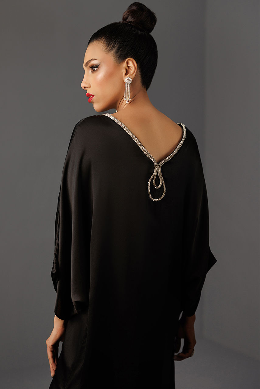 Crafted from luscious pure Charmeuse this ethereal katfan is a statement piece. Featuring our signature diamante hand crafted neck line this piece is perfect for any occasion.