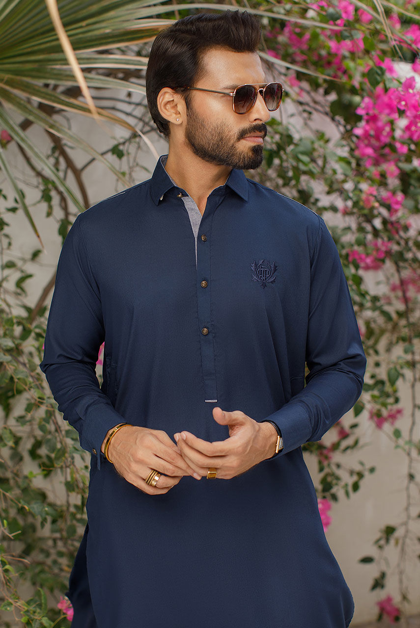 Color: Blue Fabric: Raw Silk Work Details: Button Detailing