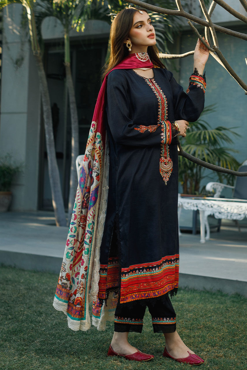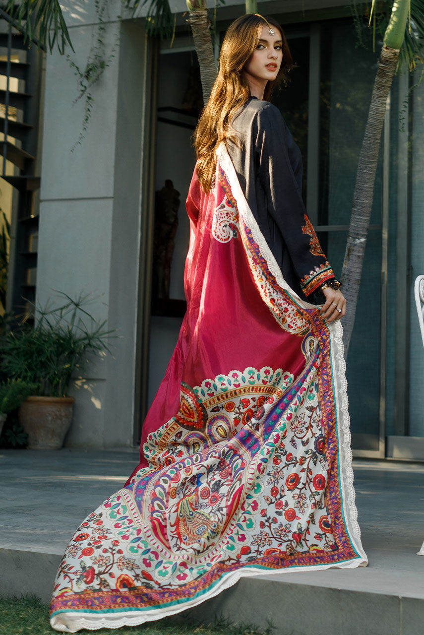 The outfit features delicate print and embroidery inspired by the Kashmiri shawls. The beautiful dupatta features a print inspired by the tree of life.