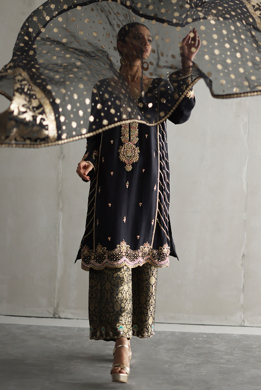 Color: Black Fabric: Raw Silk Work Details: Embroidered