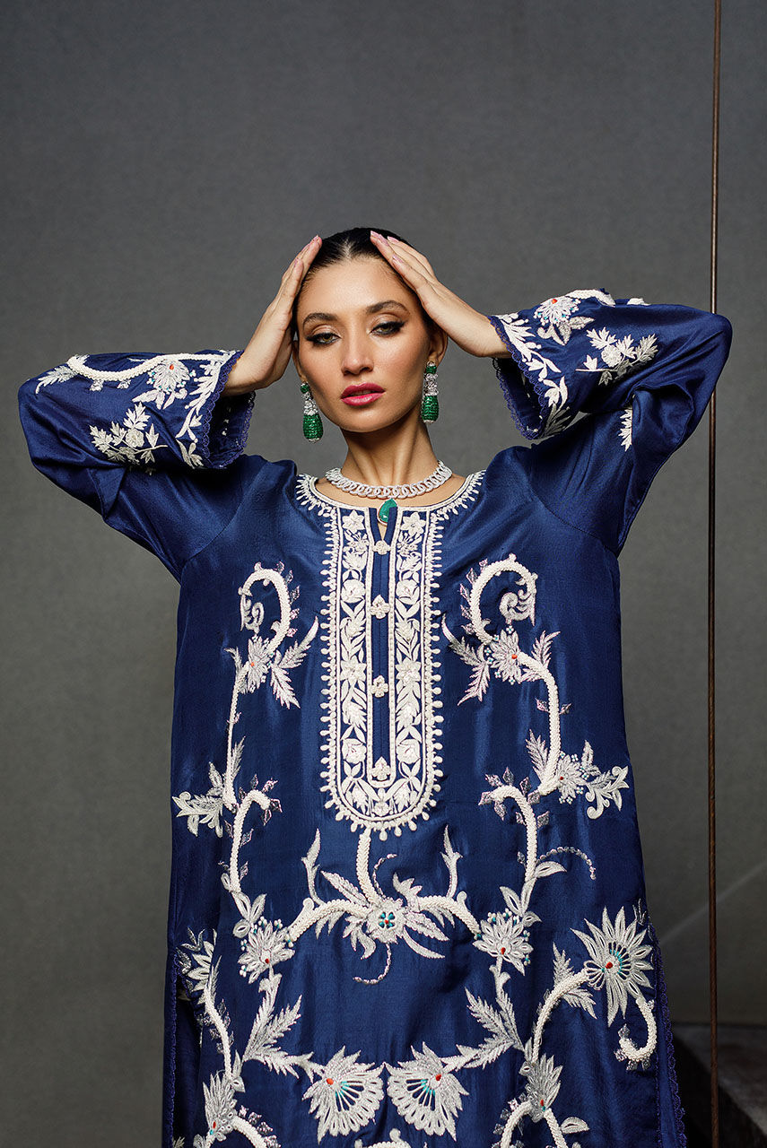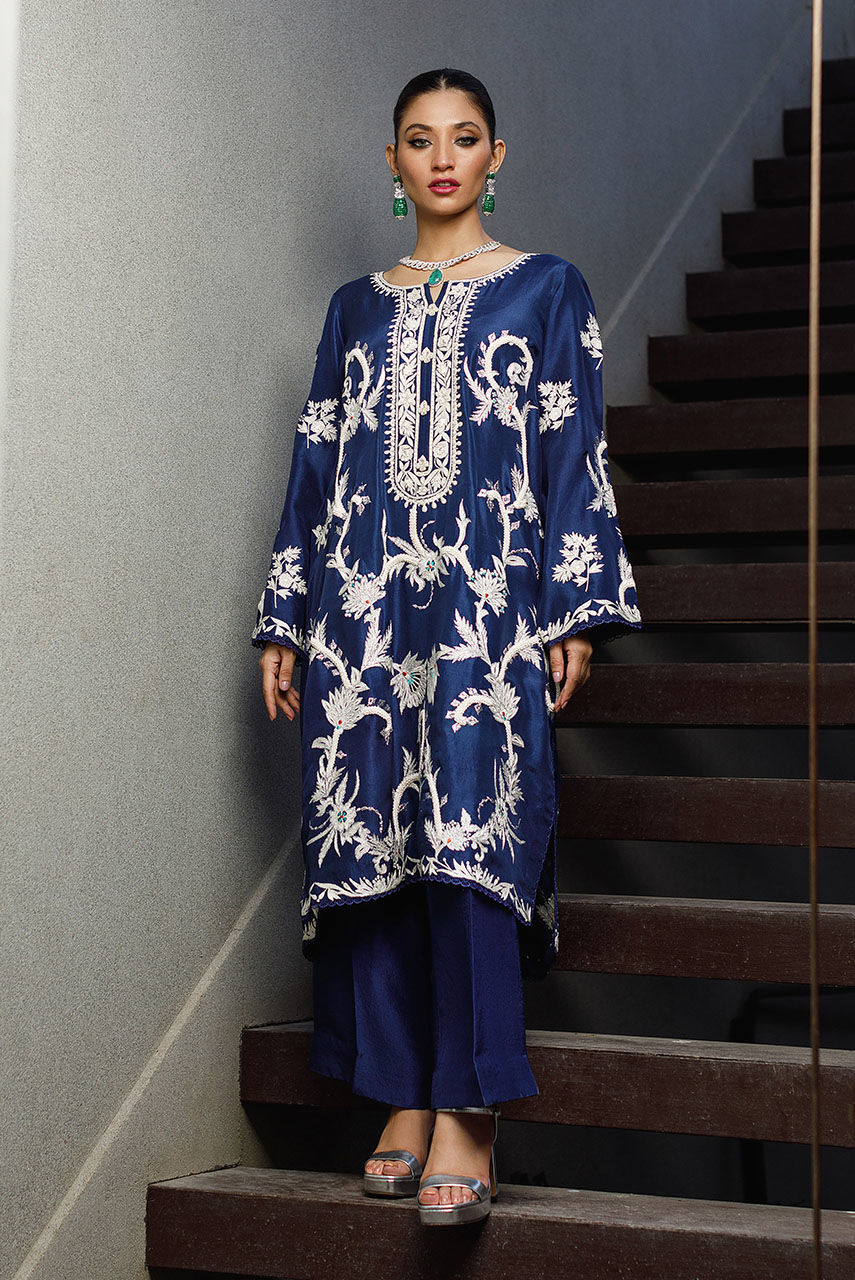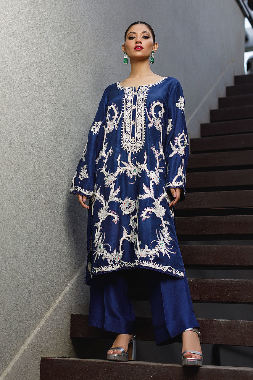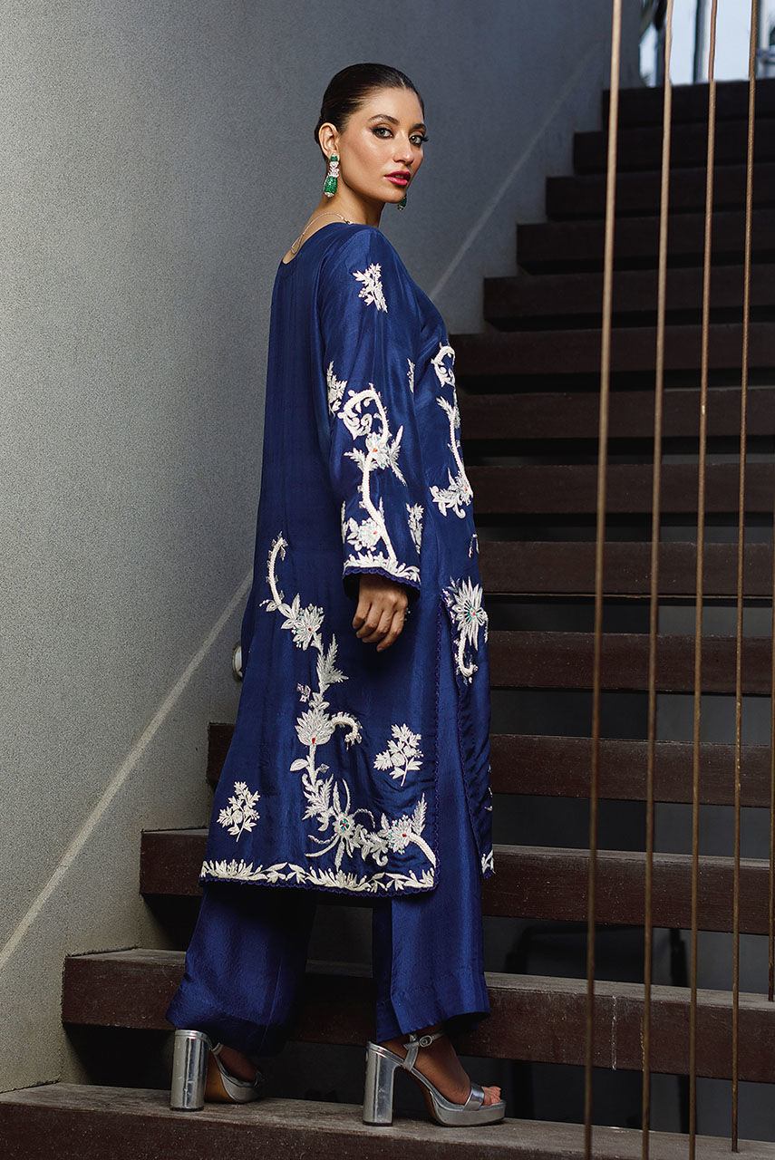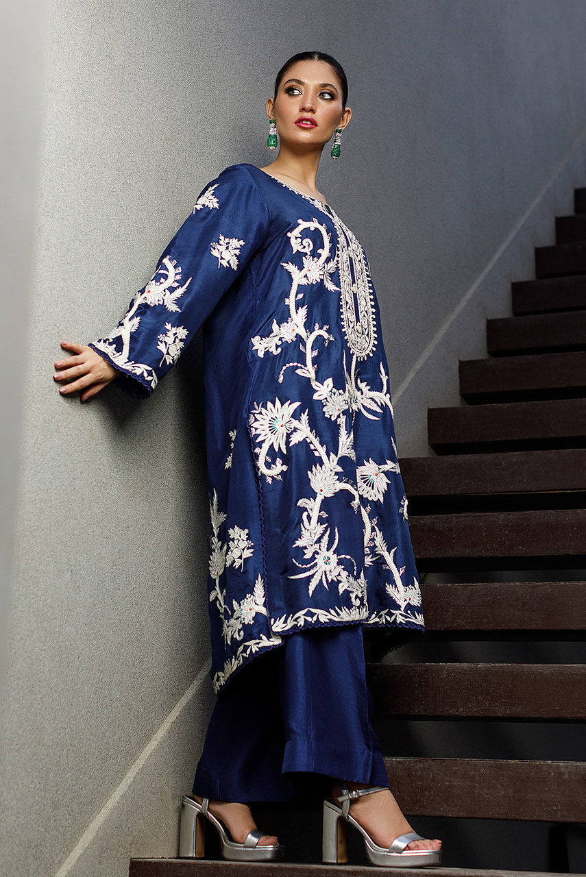 Color: Blue Fabric: Raw Silk Work Details: Embroidered