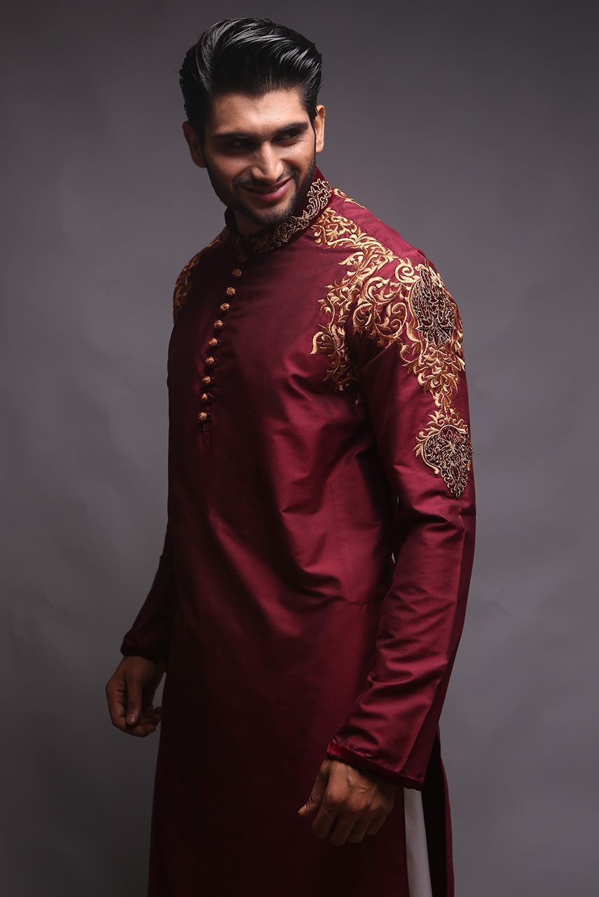 Maroon cotton silk kurta