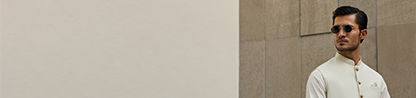 A black Khadi Silk kurta pajama with embroidered motifs on the kurta