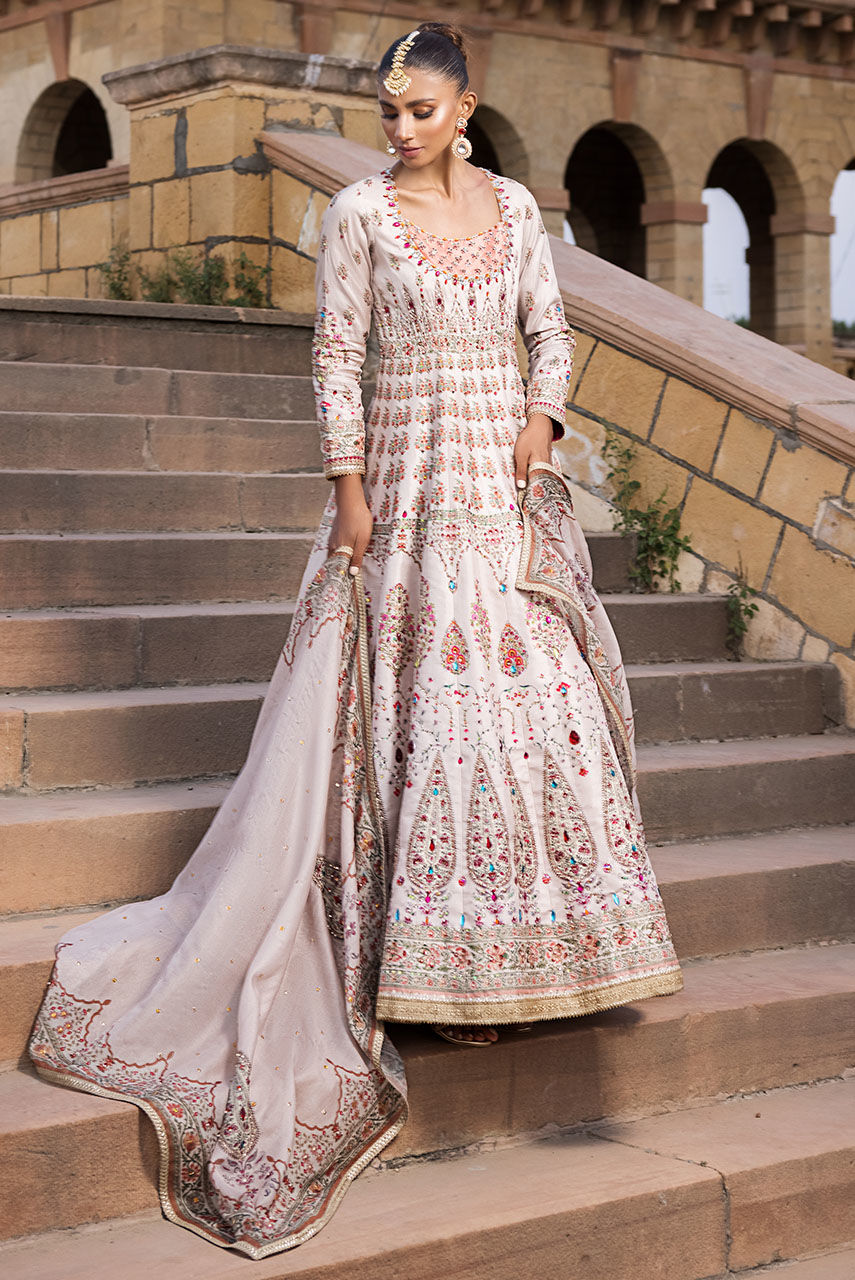 This dress is a symbol of elegance and status. No matter how much the trends try to navigate us, our goal has only been to be able to sprinkle our souls out into design to make our bride's dreams come true. This is where our bride carries herself with absolute uniqueness like a goddess. The patterns and motifs are highly ethnic-inspired, despite the colour of the base fabric, it is only to bring the fortune out of the complete Jora. Like, our bride who immediately brings out the shaft of light for everyone where ever she goes.